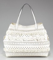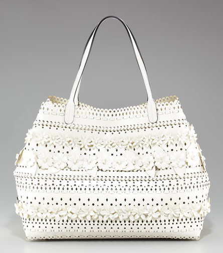 It has too much of the perforated thing going on for me. It looks too large to be carrying all the frou-frou. Not one of my favorite Valentino’s.