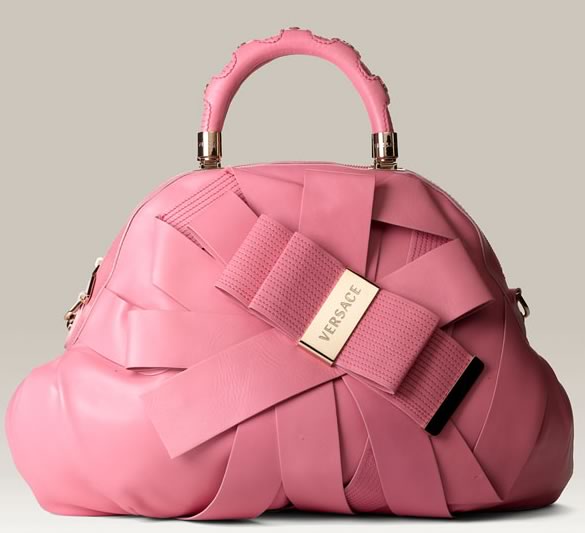 Oh my! Very rarely do I start of talking about the price of a handbag, but in this case, I have to. I cannot believe this handbag is over $4,000! I know, I know, it is Versace and perhaps I should be used to these kind of price tag, but still, c’mon now. Ok, let me talk about the handbag a bit. The Versace Venita Bow Satchel is a new piece from the spring 2009 line. Wide swaths of gorgeous pink leather topped with some trapunto stitching definitely work well together. Now add a logo-topped bow and double handles and the entire bag comes together. I like the overall soft, whimsical and feminine look of this handbag. This is definitely a handbag that you don’t see often. Although a quick glance might lead you to think the bag is a tad messy, I think it works. If I could talk to the folks over at Versace I would definitely be curious to know where the inspiration came from. What a fun and flirty handbag to sport this Spring, now if I could just collect all the pennies from all the couches across America I might be in luck. Pre-order through Nordstrom for $4395.